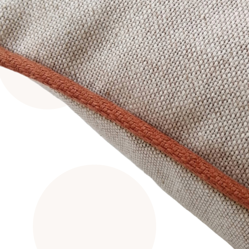 Gemêleerde beige stof met roestbruine bies