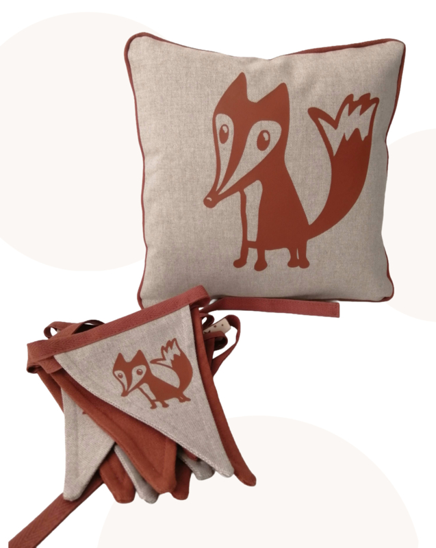 Decoratieset Vosje Spencer | Kussen & Vlaggenlijn voor Kinderkamer