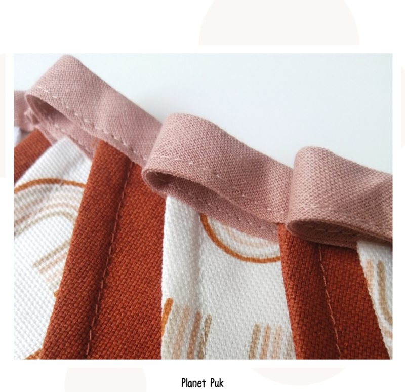 | Stof | Linnenlook Roestbruin: 80%CO, 20% PE Linnenlook regenboogjes: 110% CO |