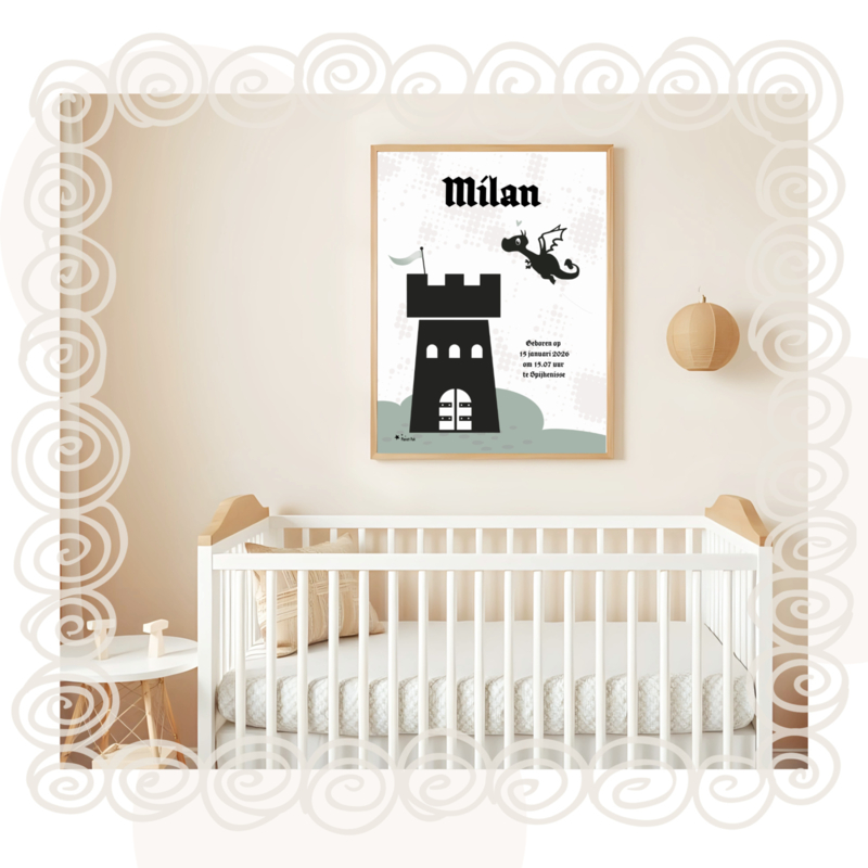 Geboorteposter Kasteel & Draakje | A3-Formaat