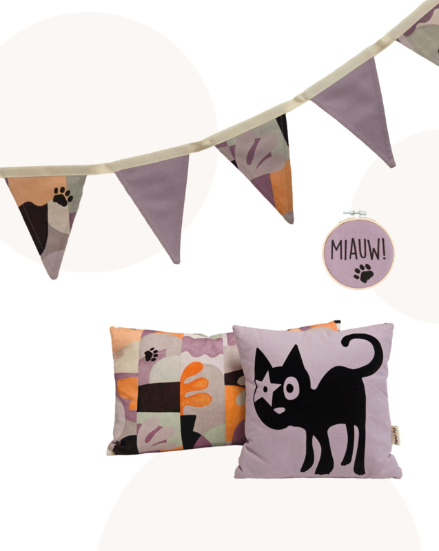 Bijzonder: Elke accessoire is uniek, afhankelijk van hoe de print uitkomt, zo krijgt je set dat echte “Hoshi de Kat” gevoel: speels, verrassend en vol karakter.