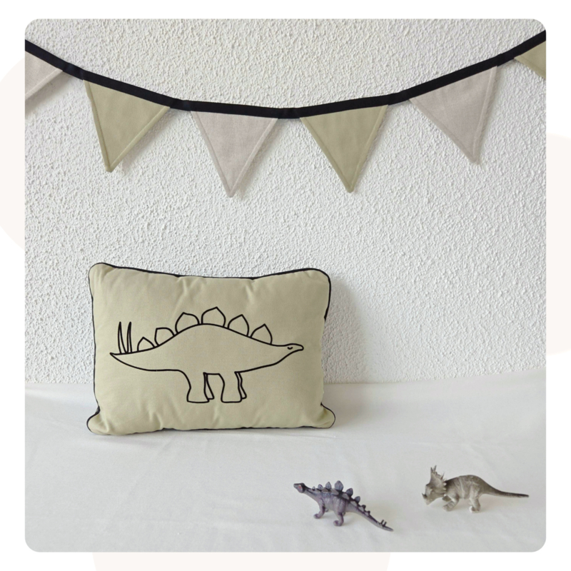 Breng een warme en rustige sfeer in de baby- of kinderkamer met deze handgemaakte vlaggenlijn in olijfgroen en beige. De zachte natuurtinten passen perfect in een dino- of safari kamer, maar combineren ook prachtig met aardetinten, groen, oranje of lila.